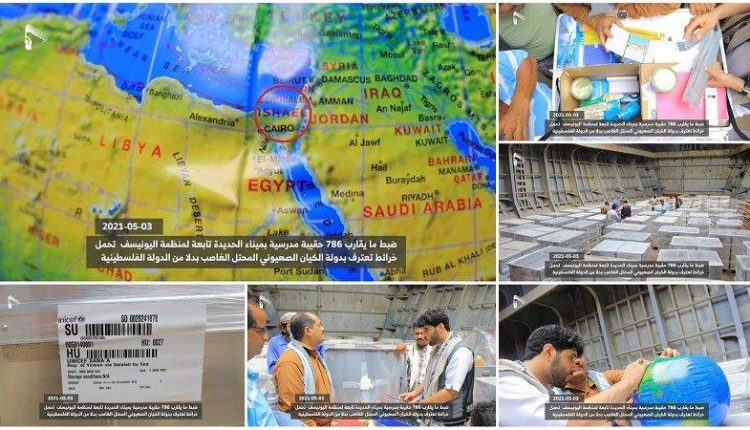 ضبطت السلطات بميناء الحديدة، مساء الأحد، ما يقارب 786 حقيبة مدرسية تتبع منظمة اليونيسف، تحمل خرائط تعترف بالكيان الصهيوني المحتل الغاصب بدلا من الدولة الفلسطينية، كانت تنوي توزيعها لطلاب وطالبات محافظة الحديدة.