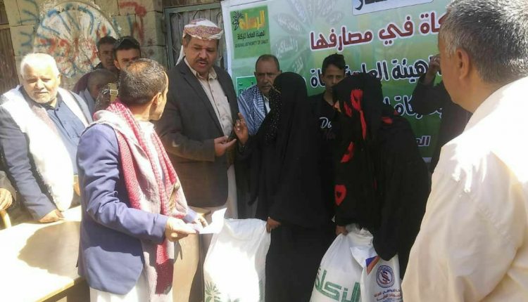 دشن في مديرية النادرة بمحافظة إب صرف الزكاة العينية لمستحقيها من الفقراء والمساكين ، تحت شعار ( واتوا حقه يوم حصادة ) .