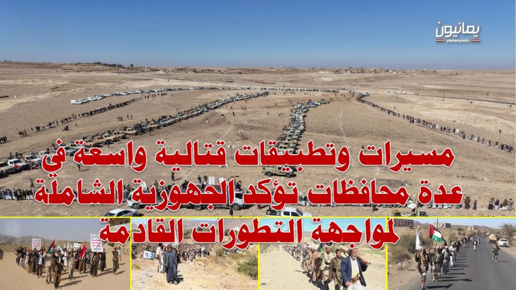 مسيرات وتطبيقات قتالية واسعة في عدة محافظات تؤكد الجهوزية الشاملة لمواجهة التطورات القادمة